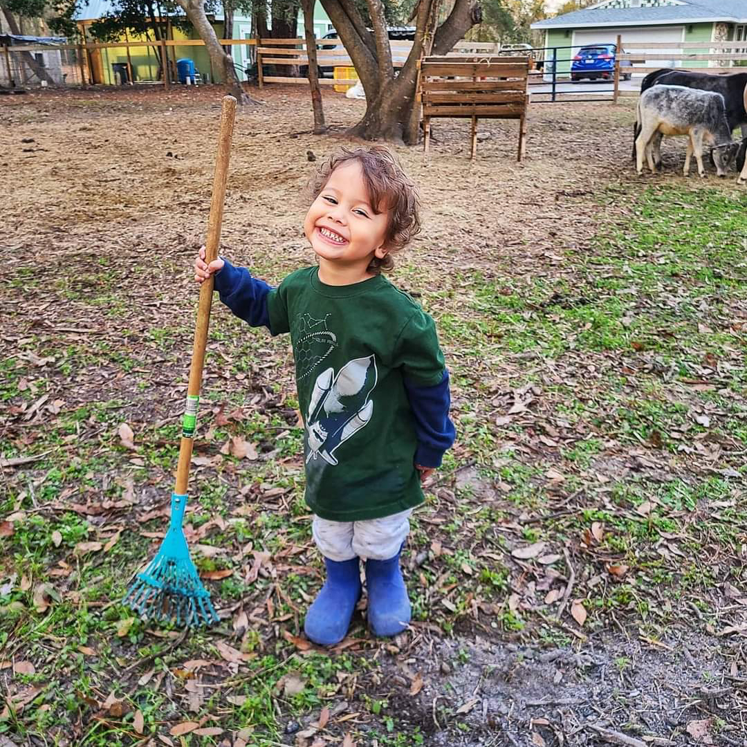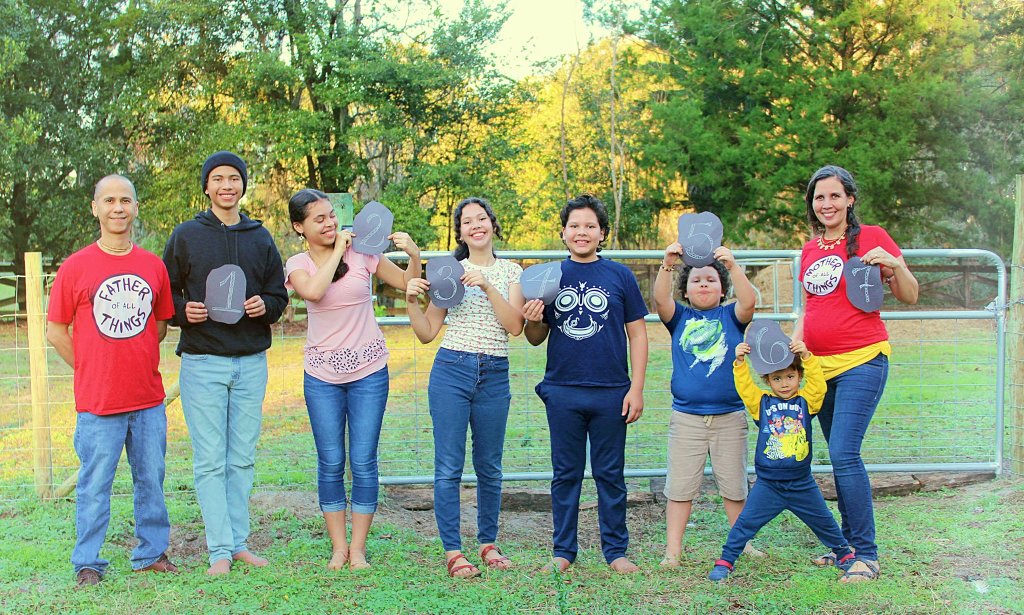 Our current household consists of 9 humans (the baby was born this summer!) and over 50 animals. Humans appear in descending chronological order.